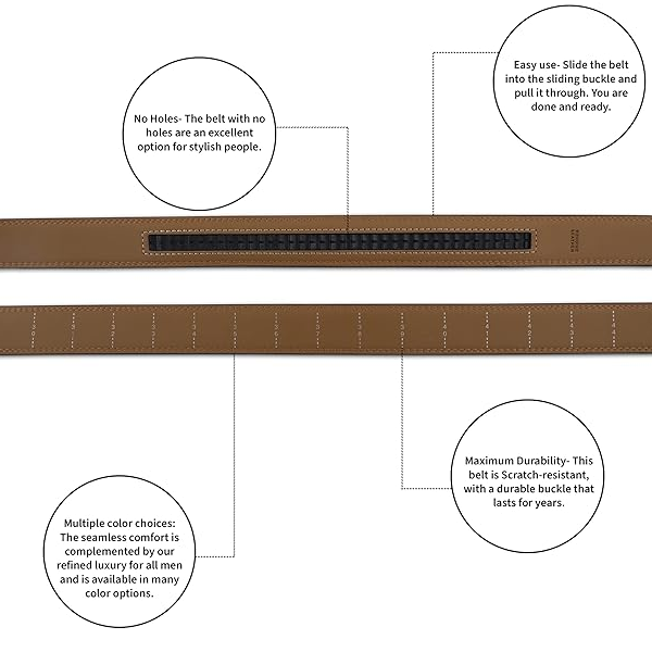No Holes- The Auto Lock Buckle Belt is the most comfortable belt and one of our most innovative belts, with excellent customizable adjustments and no holes. Easy removable buckle!